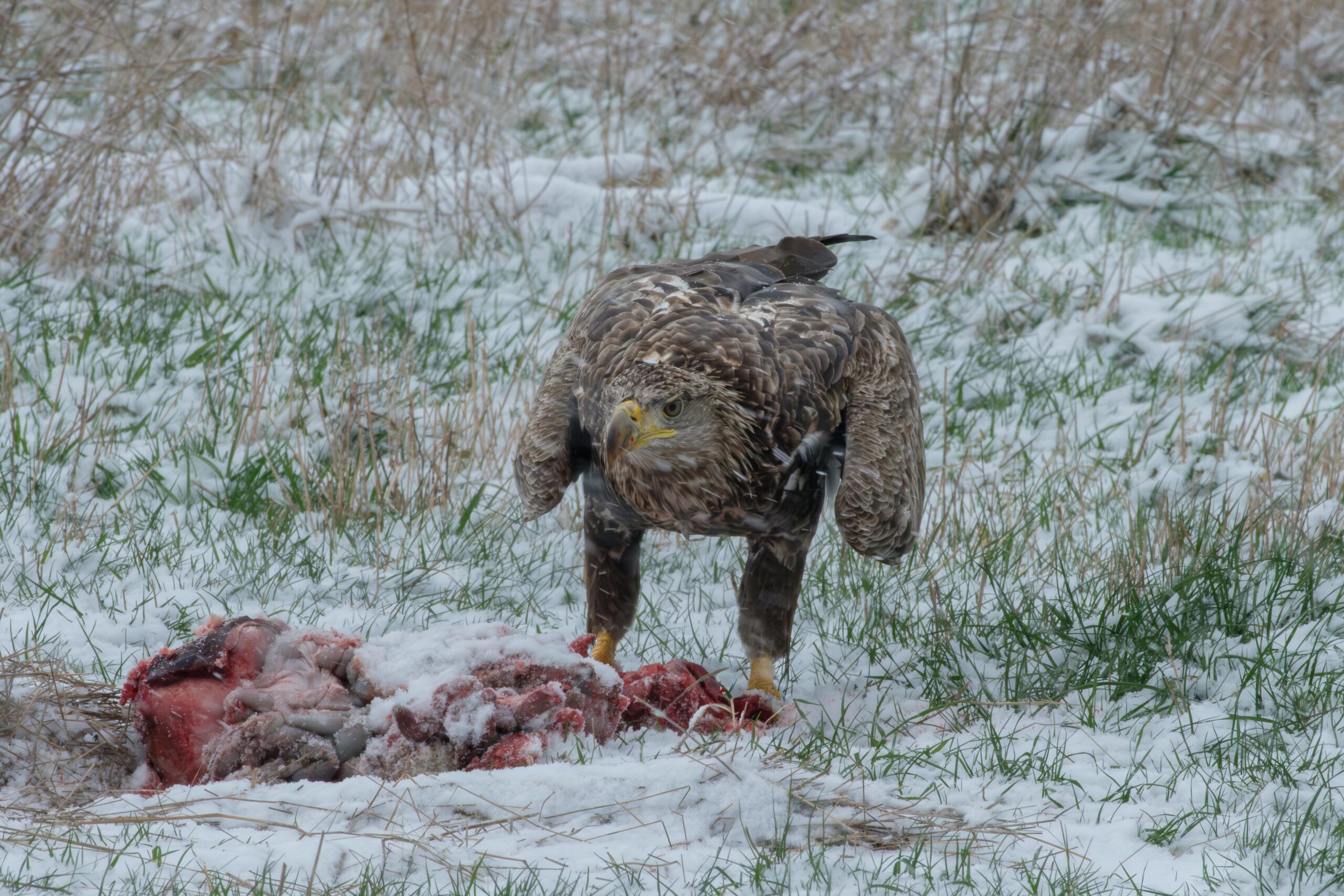 Die neue Fotohide – Saison ist am 15.09.2025 gestartet und wie! Gleich der erste Fotograf konnte über EINE Stunde den Seeadler in Entfernungen zwischen 15m – 20m fotografieren und beobachten. Eine weibliche Rohrweihe kam auch zum Futterplatz. Mega Einstieg in die neue Saison!